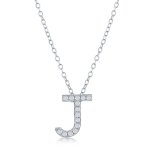 Sterling Silver Rhodium Plated Cubic Zirconia Micro Pave Initial J Pendant on a Sterling Silver Rhodium Plated Chain with a Lobster Clasp16-18"